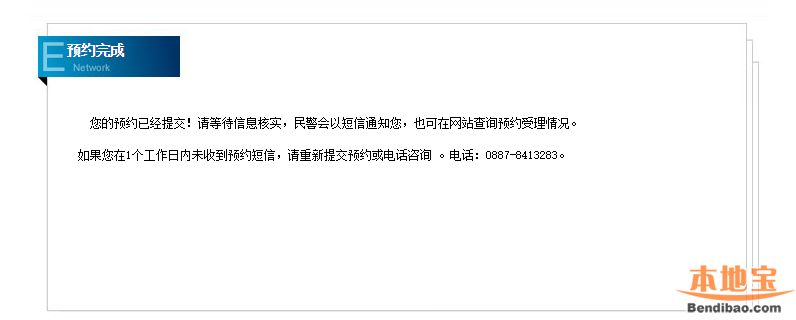 提交后辦事民警會以手機(jī)信息方式通去辦理窗口辦理;