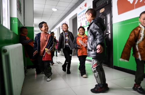 2021年3月26日,青海瑪多縣民族寄宿制中學(xué)二年級(jí)的學(xué)生在課間玩耍。該校目前采用清潔取暖方式,學(xué)生的學(xué)習(xí)和生活環(huán)境大為改善。新華社記者 張宏祥 攝