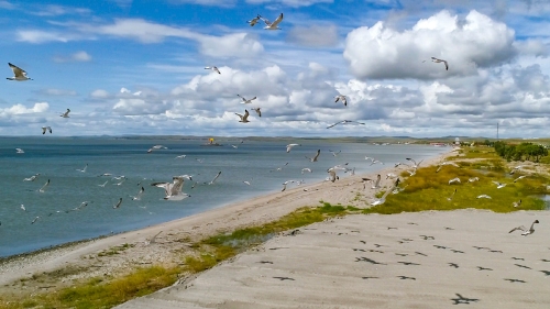 這是2019年8月28日拍攝的呼倫湖畔的水鳥(niǎo)(無(wú)人機(jī)照片)。新華社記者 沈伯韓 攝