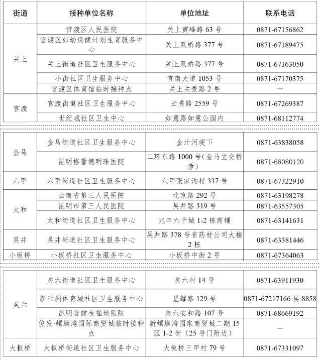 二、官渡區(qū)接種點名單