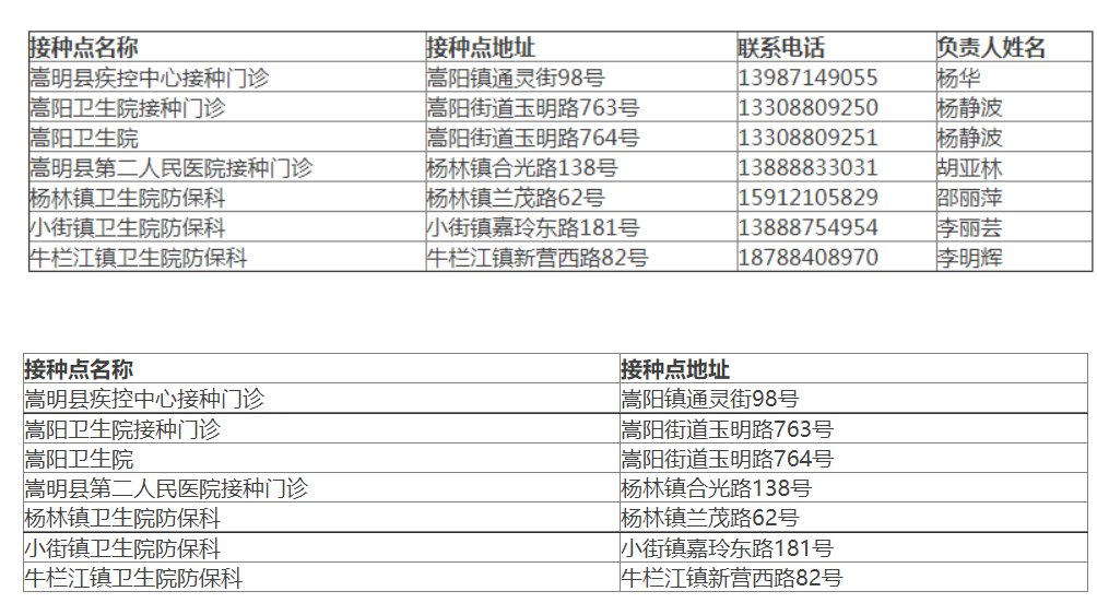 嵩明縣市民預(yù)約接種新冠病毒疫苗單位名單、地址、接種時(shí)間和預(yù)約電話(huà)如下: