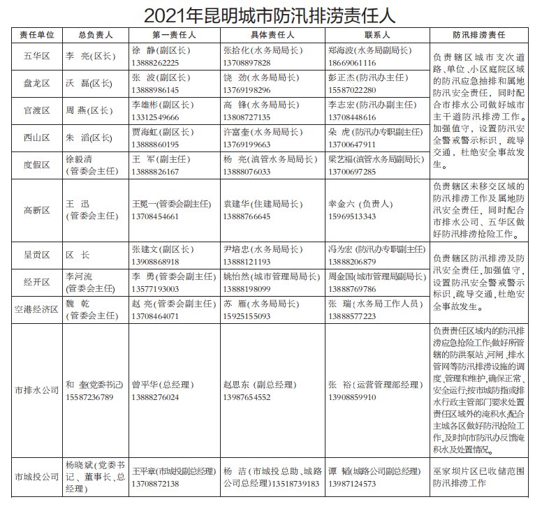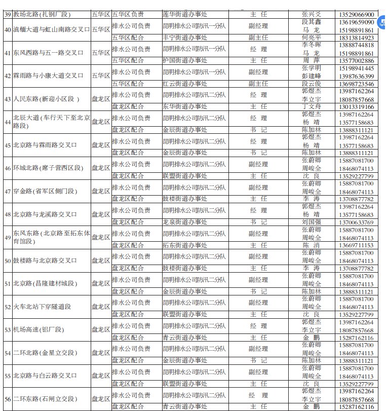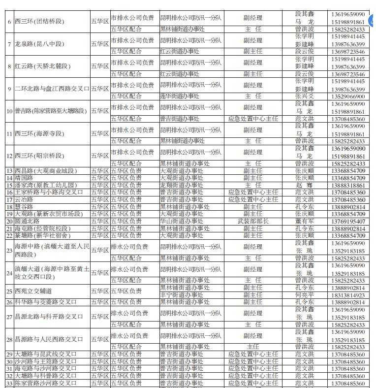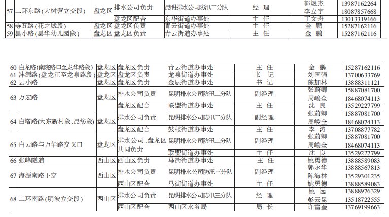 昆明市有多個(gè)淹水點(diǎn)(附負(fù)責(zé)人電話/名單)