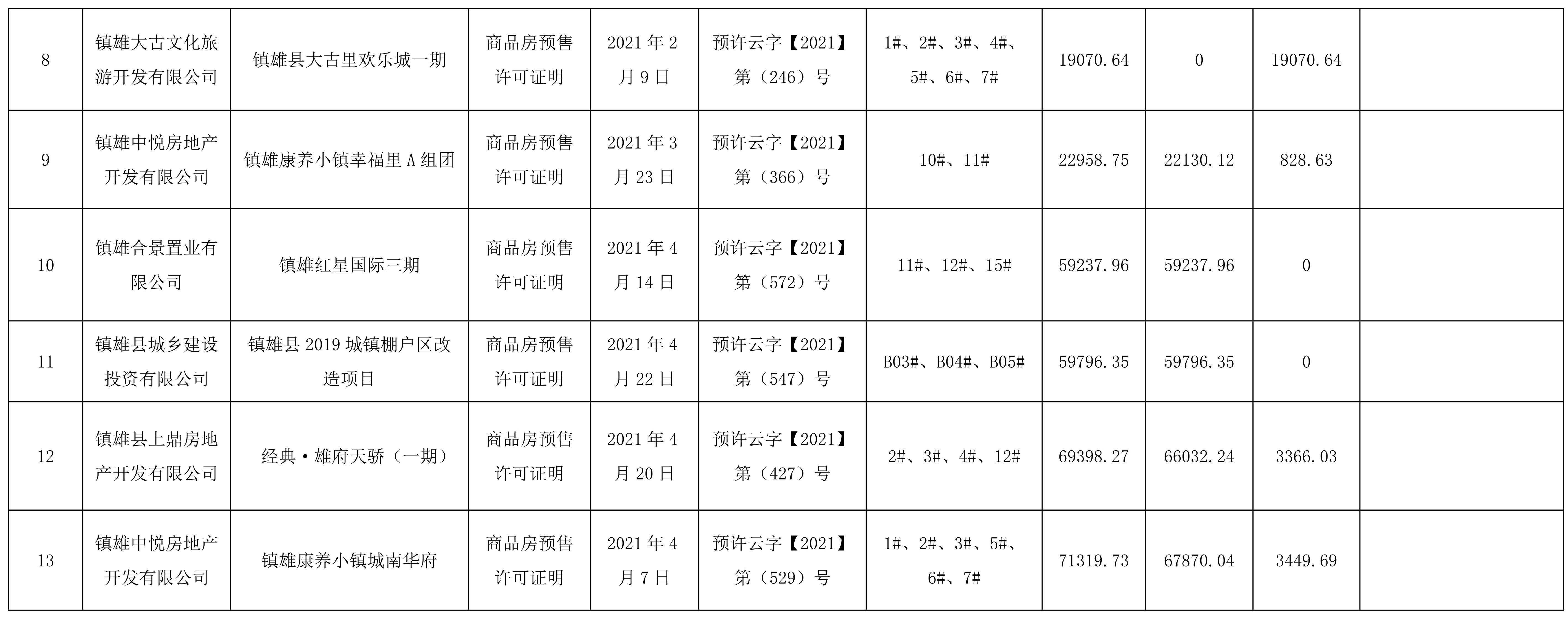 昭通市鎮(zhèn)雄縣住房和城鄉(xiāng)建設(shè)局關(guān)于2021年1月1日至2021年6月31日《商品房預(yù)售許可證明》辦理情況