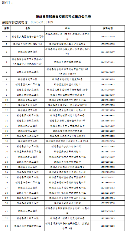 附件:1.鎮(zhèn)雄縣新冠病毒疫苗預(yù)防接種服務(wù)點(diǎn)統(tǒng)計(jì)表