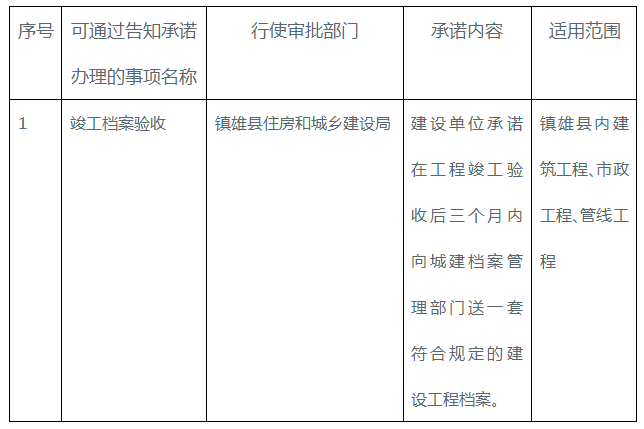 鎮(zhèn)雄縣住房和城鄉(xiāng)建設(shè)局關(guān)于竣工檔案驗(yàn)收告知承諾審批事項(xiàng)的公告