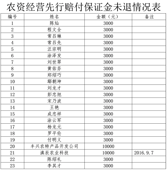 自2016年6月以來,我局對原鎮(zhèn)雄縣工商行政管理局收取的農資先行賠付保證金、原鎮(zhèn)雄縣食品藥品監(jiān)督管理局收取的藥品經營質量保證金進行清理退還。但截止目前,仍有一部分經營業(yè)主未到我局辦理清退手續(xù),請還未辦理清退手續(xù)的經營業(yè)主自本公告之日起60日之內到我局財務室辦理保證金退還業(yè)務,逾期我局將按相關規(guī)定將款項上交財政。