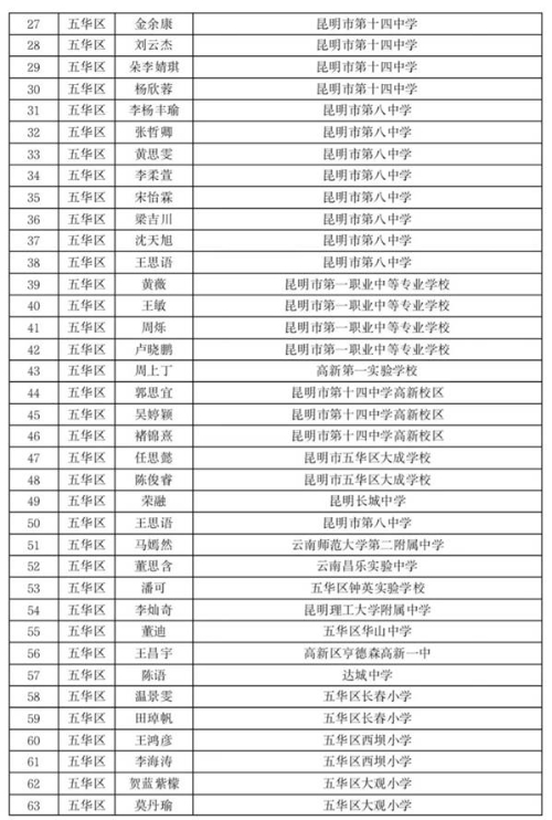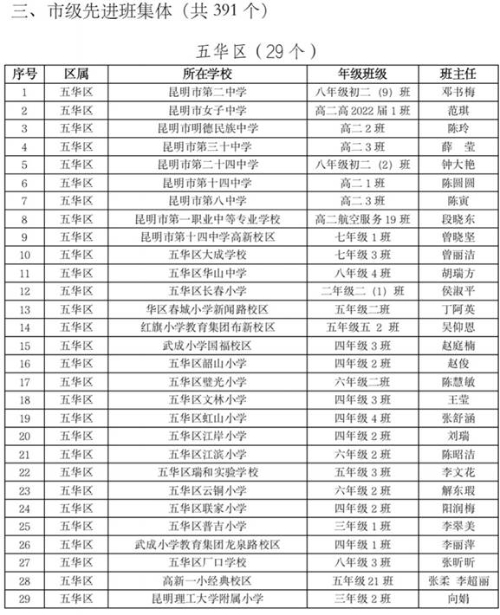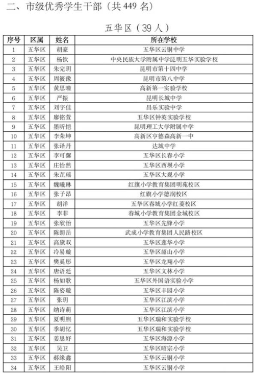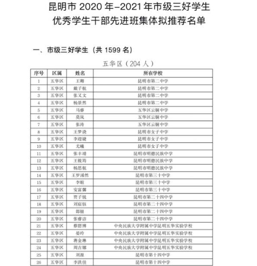 昆明市五華區(qū)關(guān)于2020—2021學(xué)年市級三好學(xué)生優(yōu)秀學(xué)生干部先進班集體擬推薦名單的公示