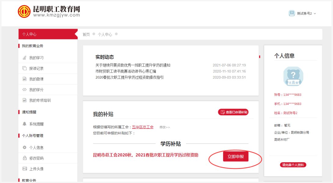 第四步:職工選擇可申請(qǐng)的補(bǔ)貼,點(diǎn)擊【立即申報(bào)】。