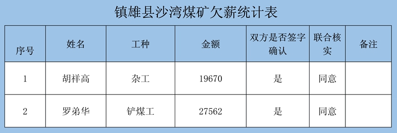 鎮(zhèn)雄縣煤礦整治工作領(lǐng)導小組關(guān)于對2020年關(guān)閉退出煤礦拖欠農(nóng)民工工資和工傷未賠付清理結(jié)果公示