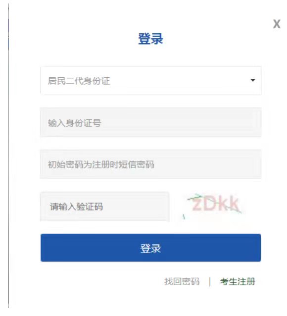 3.到了考生登錄頁(yè)面,按要求填寫“身份證號(hào)碼”、“初始密碼”、“驗(yàn)證碼”,確認(rèn)無(wú)誤后點(diǎn)擊“登錄”條目。