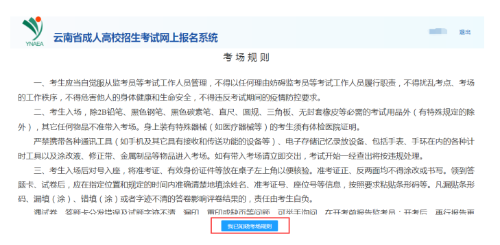 7.接下來(lái)考生要仔細(xì)閱讀《考場(chǎng)規(guī)則》,點(diǎn)擊“我已知曉考場(chǎng)規(guī)則”按鈕。