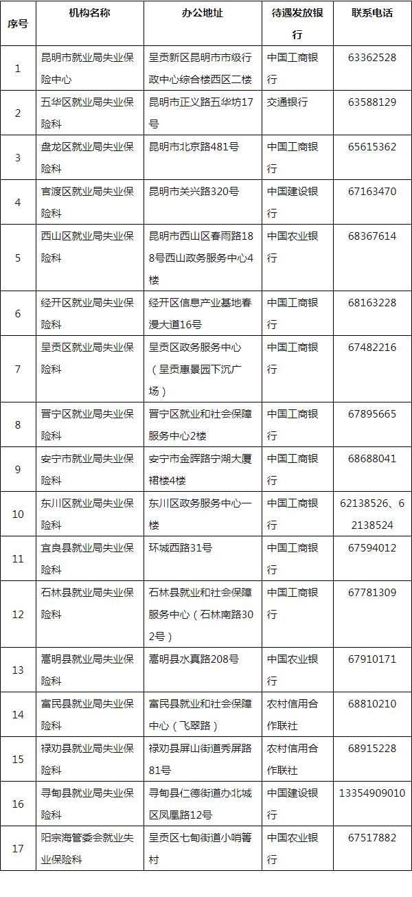 昆明失業(yè)保險經辦機構待遇發(fā)放聯(lián)系方式