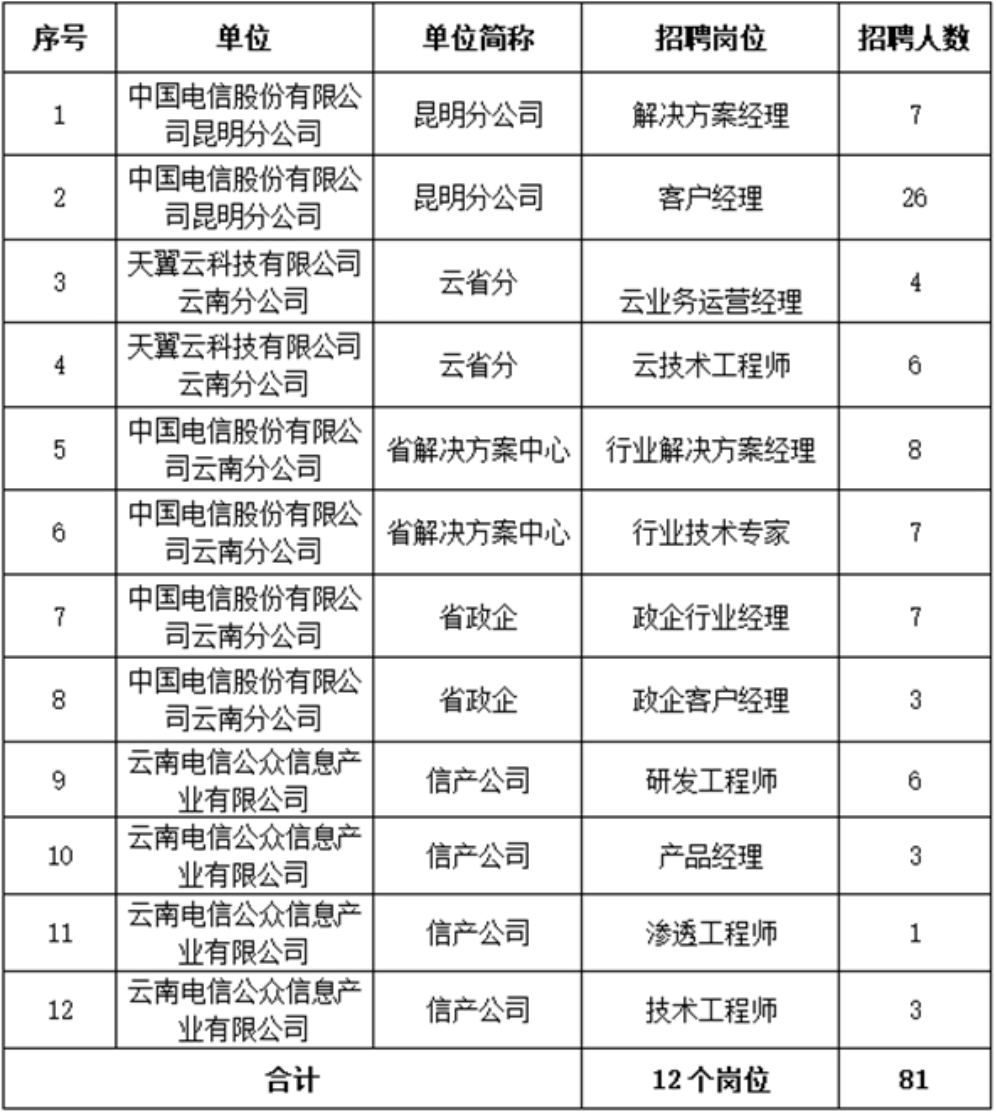 中國電信股份有限公司云南分公司2022年度行業(yè)專家及技術(shù)專家社會(huì)招聘公告