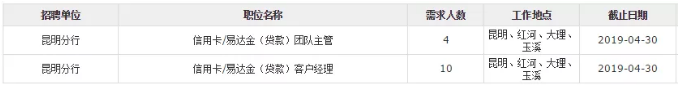 (二)信用卡/易達金(貸款)客戶經(jīng)理(工作地點可選擇:昆明、紅河、大理、玉溪)