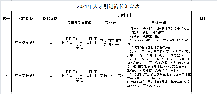 昆明滇池中學(xué)2021年人才引進(jìn)公告