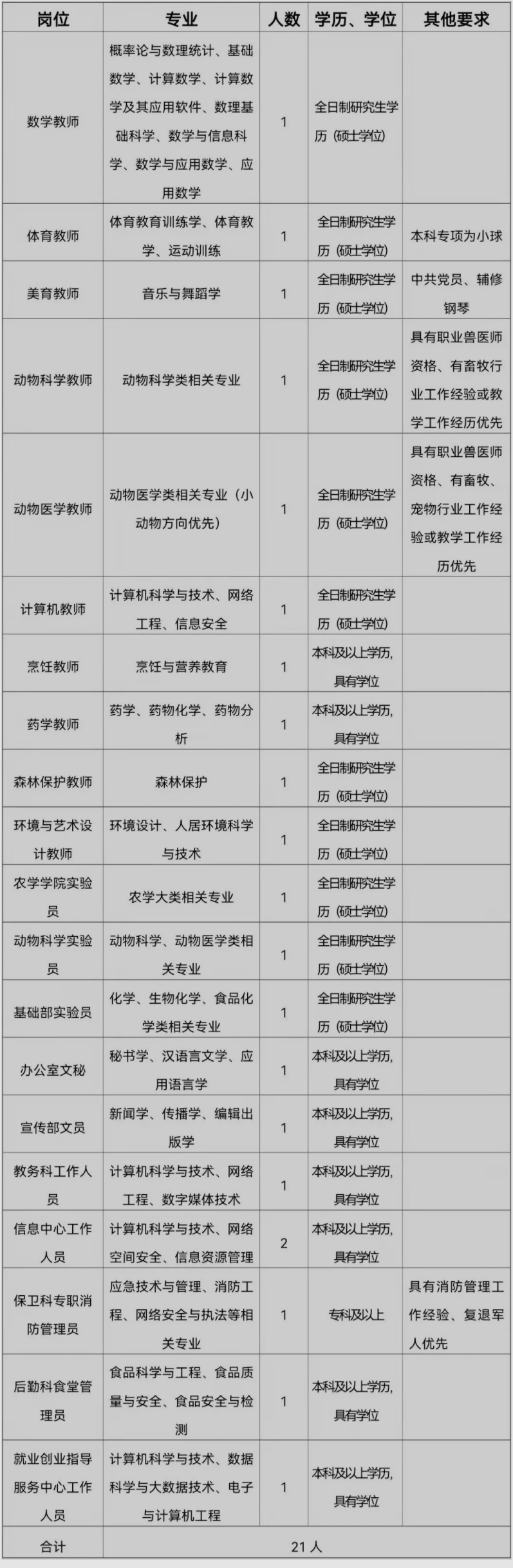 大理農(nóng)林職業(yè)技術(shù)學(xué)院2022年公開(kāi)招聘編制外教師、工作人員公告