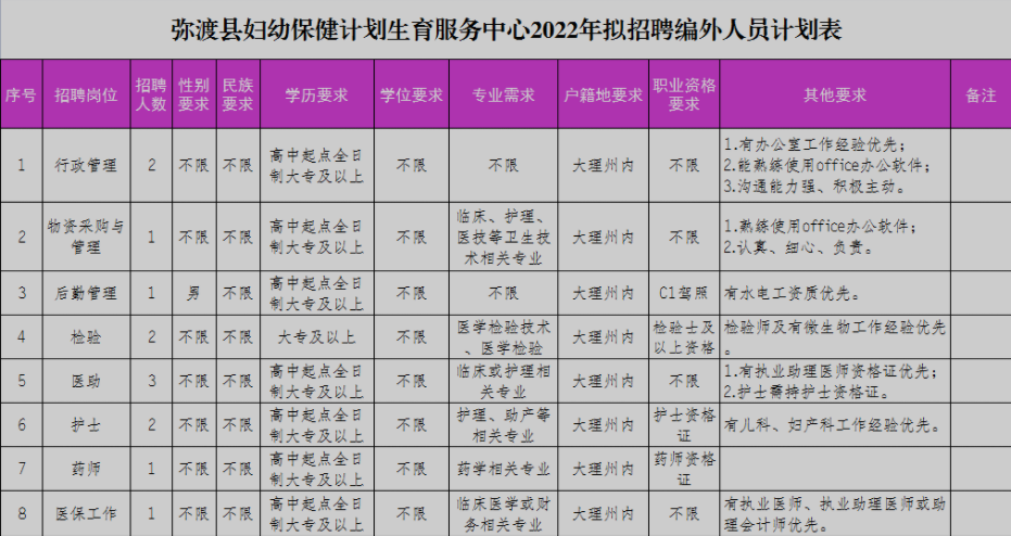 彌渡縣婦幼保健計(jì)劃生育服務(wù)中心2022年公開招聘編外人員13人