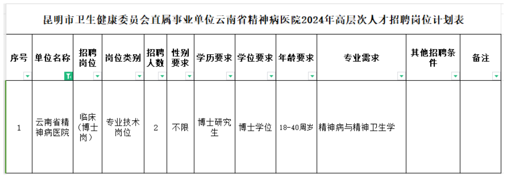 云南省精神病醫(yī)院2024年面向社會(huì)公開(kāi)招聘高層次人才的公告