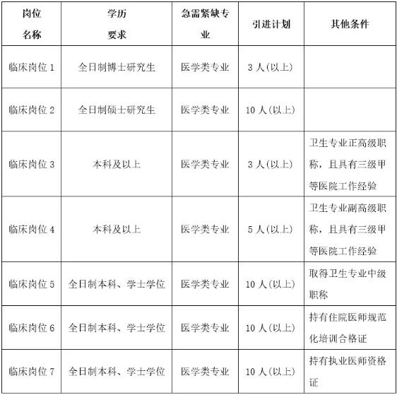 引進(jìn)對(duì)象除符合以上基本條件外,還應(yīng)符合相應(yīng)引進(jìn)層次條件和醫(yī)院發(fā)展需求。