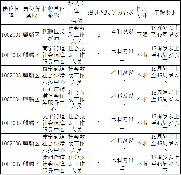 曲靖市麒麟?yún)^(qū)民政局2019年公開招聘社會救助工作人員的公告