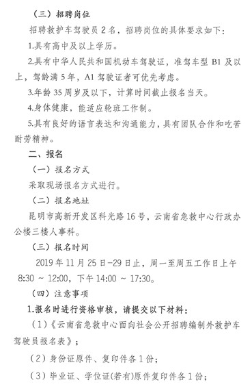 2019年云南省急救中心面向社會公開招聘編制外救護(hù)車駕駛員公告