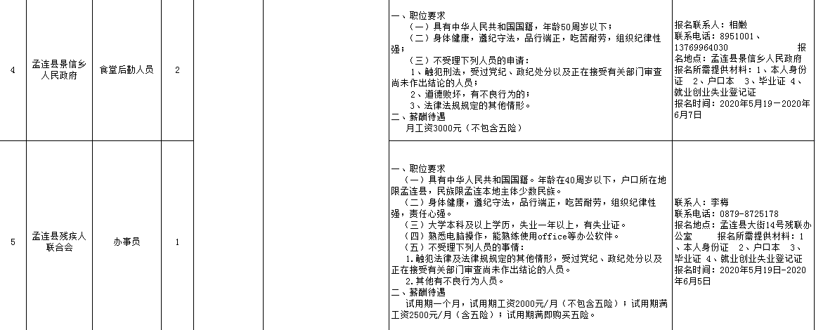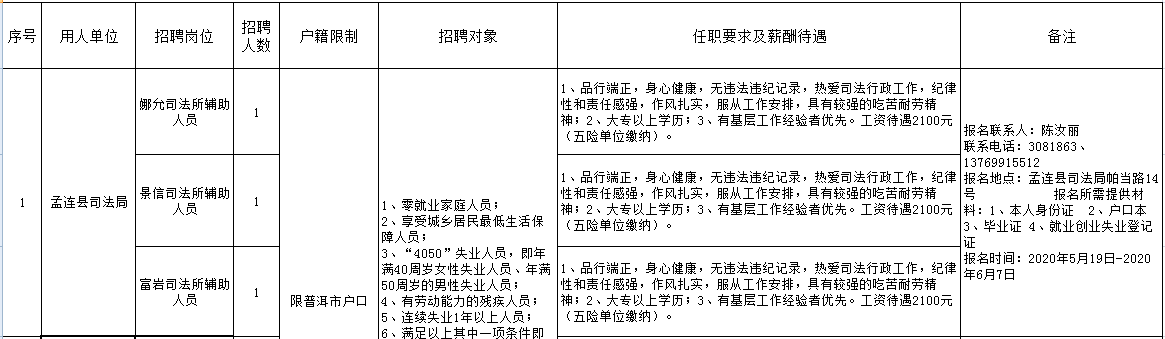普洱市孟連縣人力資源和社會(huì)保障局關(guān)于2020年第一批孟連縣城鎮(zhèn)公益性崗位招聘簡(jiǎn)章的公告