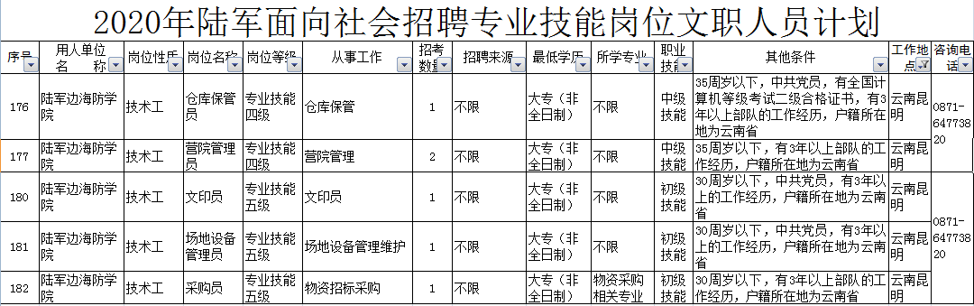 2020年陸軍面向社會招聘專業(yè)技能崗位文職人員公告