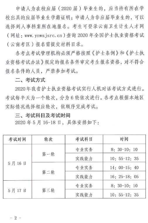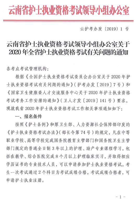 云南省關(guān)于2020年全省護(hù)士執(zhí)業(yè)資格考試有關(guān)問(wèn)題的通知